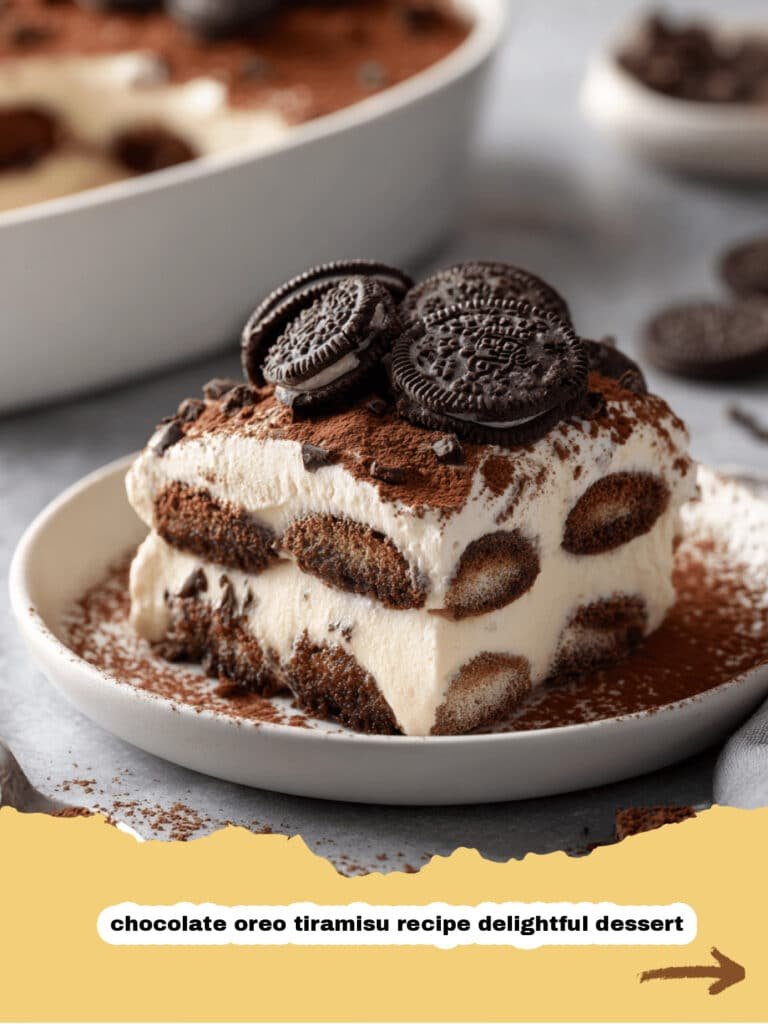 - White Chocolate Oreo Tiramisu: Instead of cocoa powder in the cream, gently fold in 1/2 cup of melted and cooled white chocolate. Use golden Oreos for a lighter, sweeter profile.