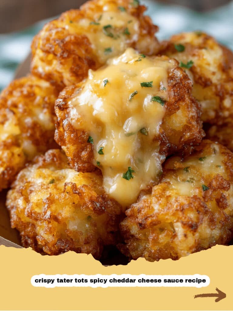 And there you have it – the ultimate recipe for Crispy Tater Tots with Spicy Cheddar Cheese Sauce made easy! This dish is more than just a recipe; it’s an invitation to indulge in a truly satisfying, flavor-packed experience that’s surprisingly simple to achieve. Whether you’re chasing a nostalgic comfort or simply craving something incredibly delicious, this combination of crispy tots and a spicy, gooey cheese sauce is guaranteed to please. So go ahead, gather your ingredients, follow these easy steps, and treat yourself (and your loved ones!) to this fantastic culinary delight. Enjoy every irresistible bite of your homemade Crispy Tater Tots with Spicy Cheddar Cheese Sauce made easy!.