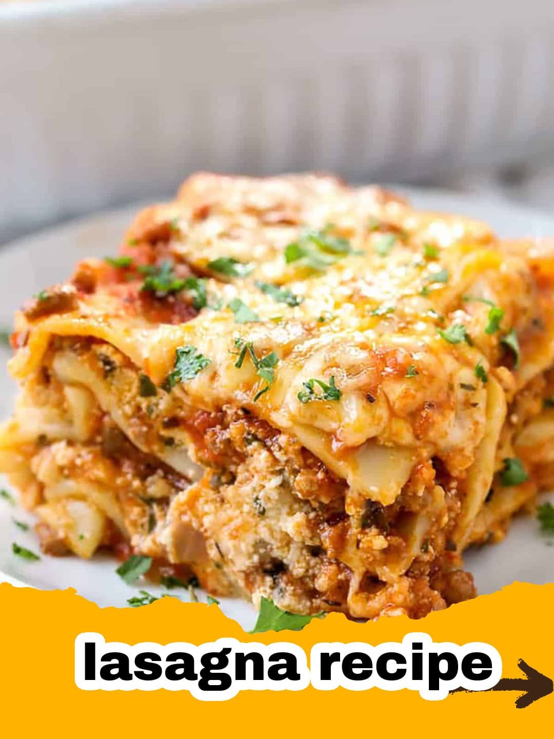 A classic, comforting lasagna recipe featuring rich meat sauce, creamy ricotta, and layers of melted mozzarella.