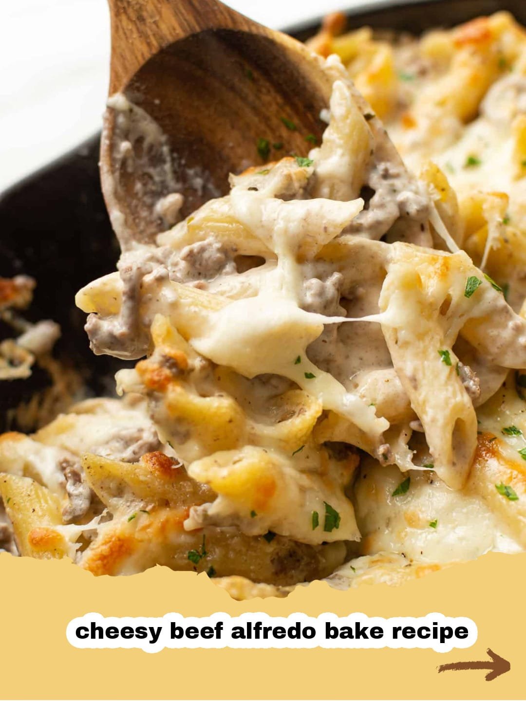A comforting and hearty pasta bake featuring savory ground beef, tender pasta, and a rich, creamy Alfredo sauce, all baked to bubbly, golden perfection.