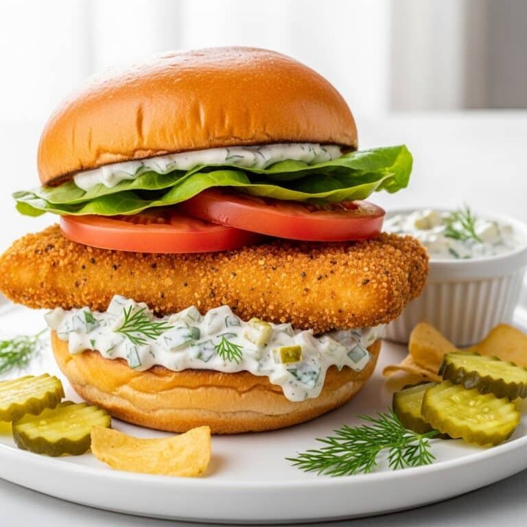 This isn't just any fish sandwich; it's an experience. The first bite transports you – the perfectly seasoned, flaky white fish, the satisfying crunch of the breading, the cool, creamy, and zesty tartar sauce, all nestled in a soft bun with crisp lettuce and a juicy tomato. It’s comfort food elevated, perfect for a weeknight dinner, a casual lunch, or even a relaxed weekend gathering. Forget soggy, greasy imitations; this recipe is about celebrating fresh flavors and smart cooking techniques to achieve maximum deliciousness. I promise, once you try this Oven-Fried Fish Sandwich with Triple Pickle Tartar Recipe, you’ll never look back!