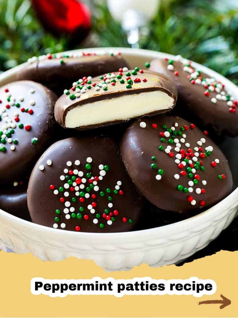 Turn your peppermint patties into festive holiday treats! Before the chocolate sets, sprinkle them with crushed candy canes, holiday sprinkles, or even edible glitter. These make fantastic additions to a holiday cookie platter alongside other favorites like Classic Christmas Sugar Cookies or served with a warm mug of The Coziest Homemade Hot Chocolate. The cool mint flavor is especially welcome after a rich holiday meal, offering a refreshing finish.
