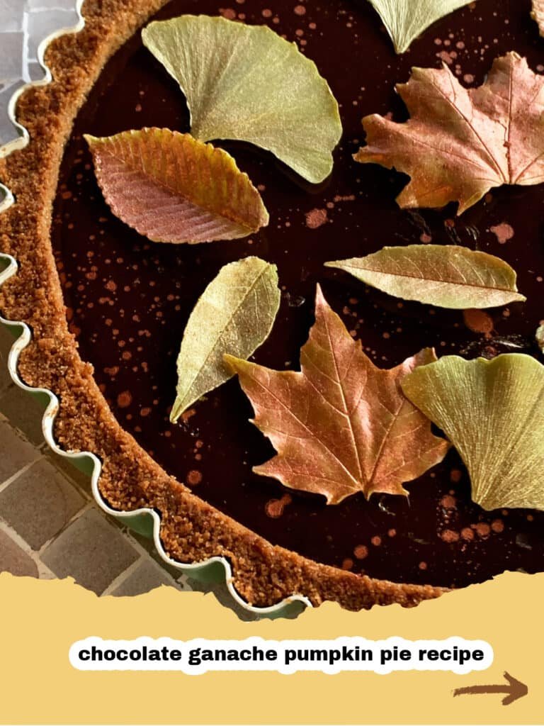 - Step 10: Once the pumpkin pie is completely cool, pour the warm (but not hot) chocolate ganache evenly over the top of the pie. Gently tilt the pie to spread the ganache to the edges.