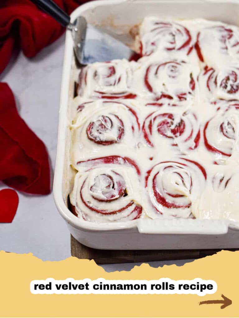 Yes! You can prepare the assembled, unbaked Red Velvet Cinnamon Rolls the night before. Cover the baking dish tightly with plastic wrap and refrigerate overnight. In the morning, remove them from the fridge and let them come to room temperature and rise for about 45-60 minutes before baking as directed.