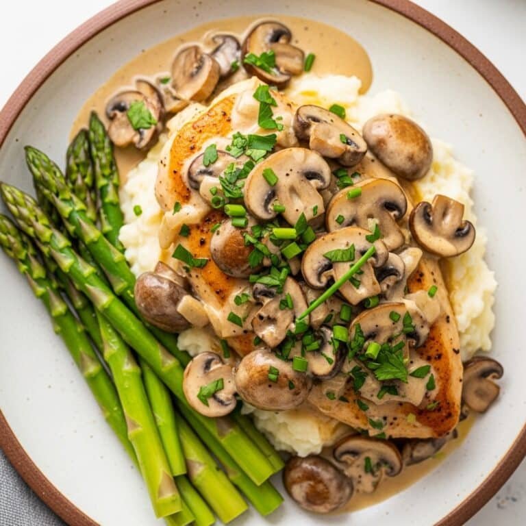 Creamy Mushroom Chicken pairs wonderfully with a variety of sides! Mashed potatoes, steamed rice, pasta (like fettuccine or penne), or a simple side of roasted or steamed vegetables like green beans, broccoli, or asparagus are all excellent choices to complement the rich sauce.