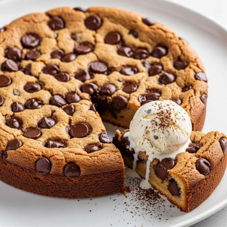 This easy-to-make Giant Chocolate Chip Cookie Cake delivers a soft, chewy, and intensely chocolatey dessert, perfect for birthdays, parties, or any occasion needing a touch of delicious celebration.